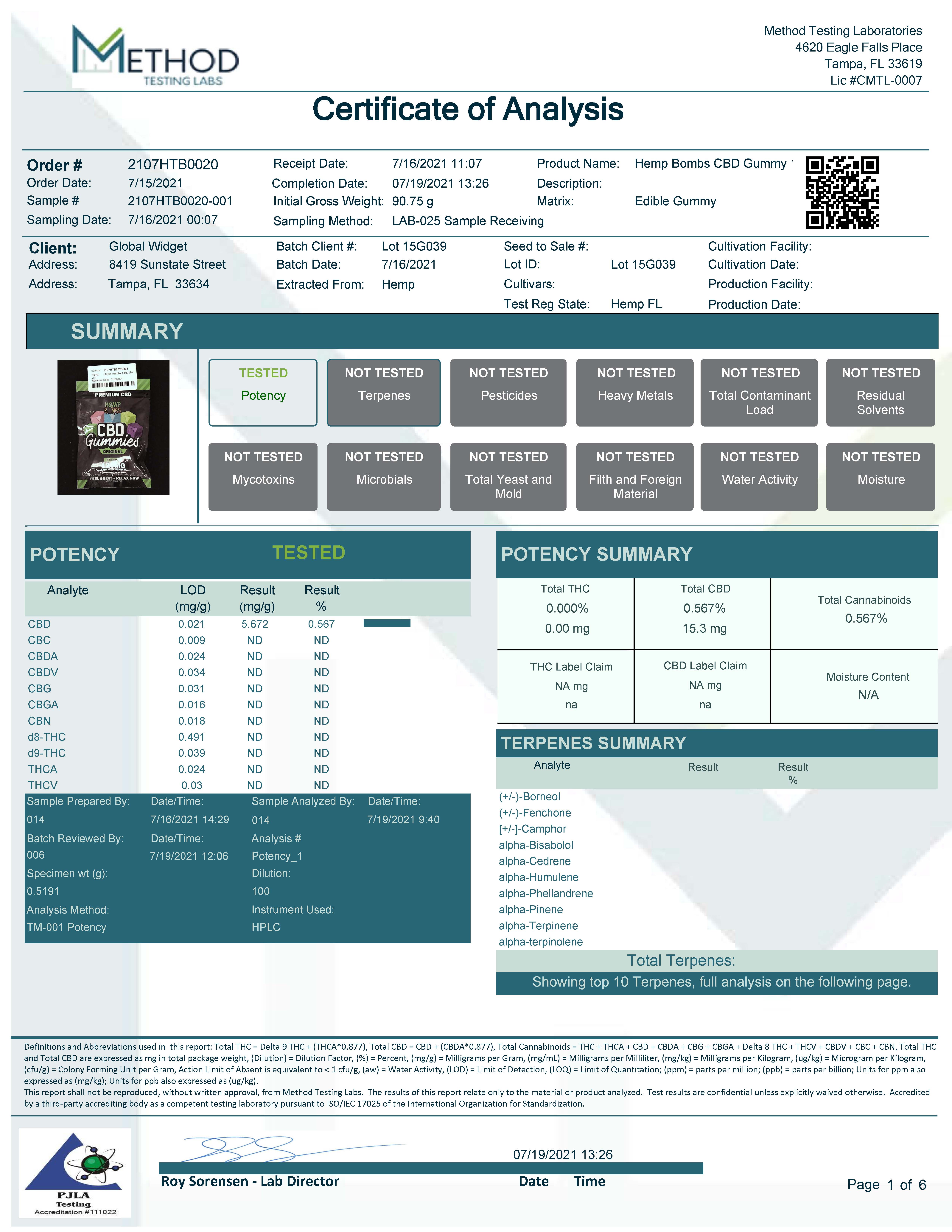 • 15mg of CBD per gummy